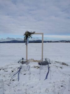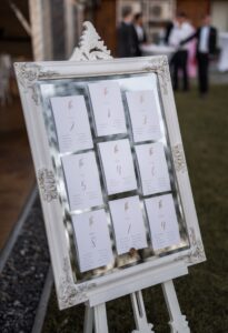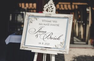 2x dřevěný stojan (na uvítání/zasedací pořádek)