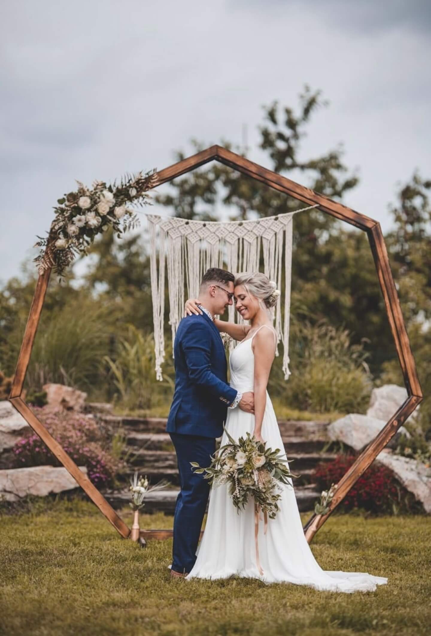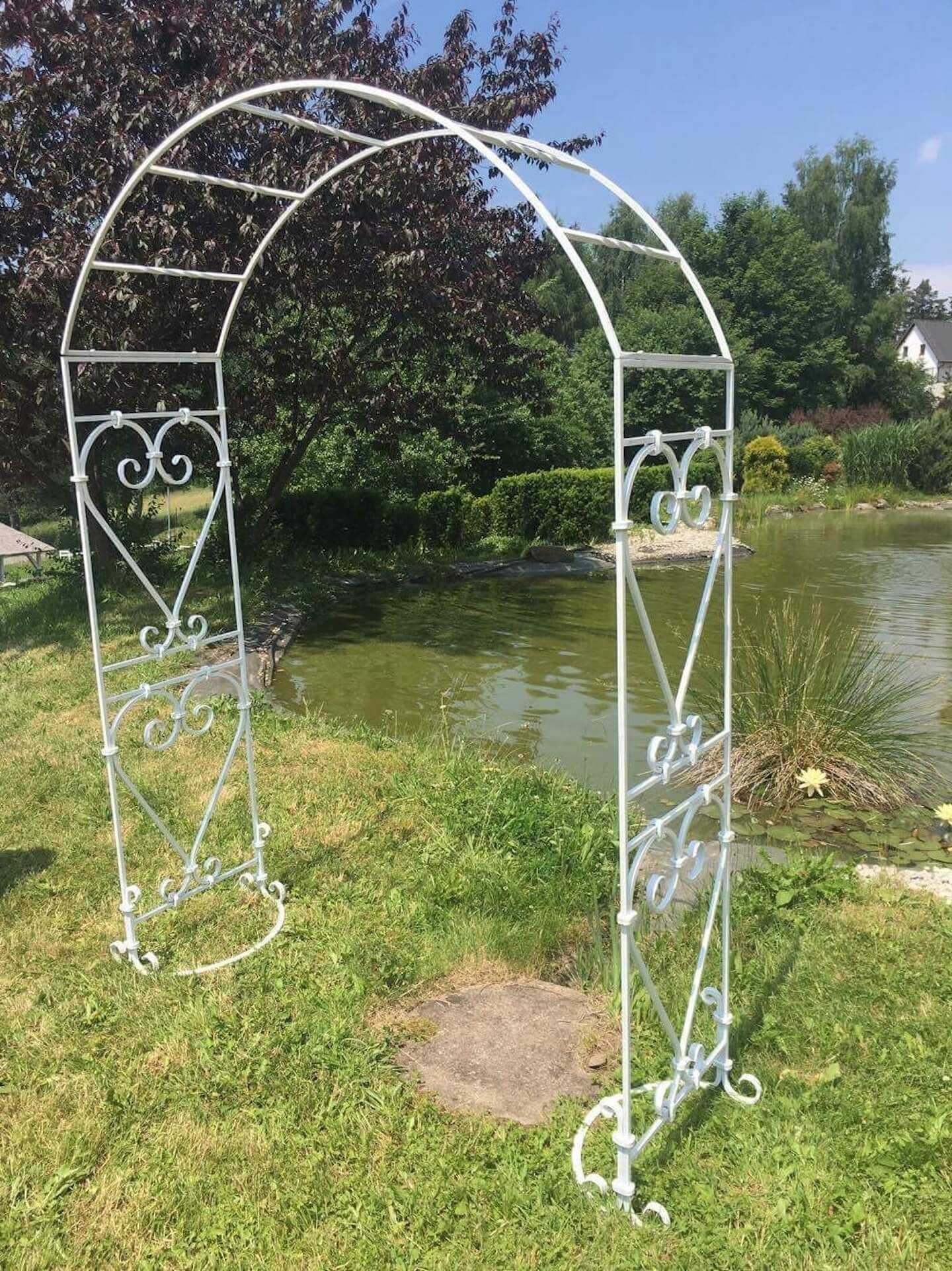 - 17. Hranatá brána dřevěná z hranolů s bílými květinami
