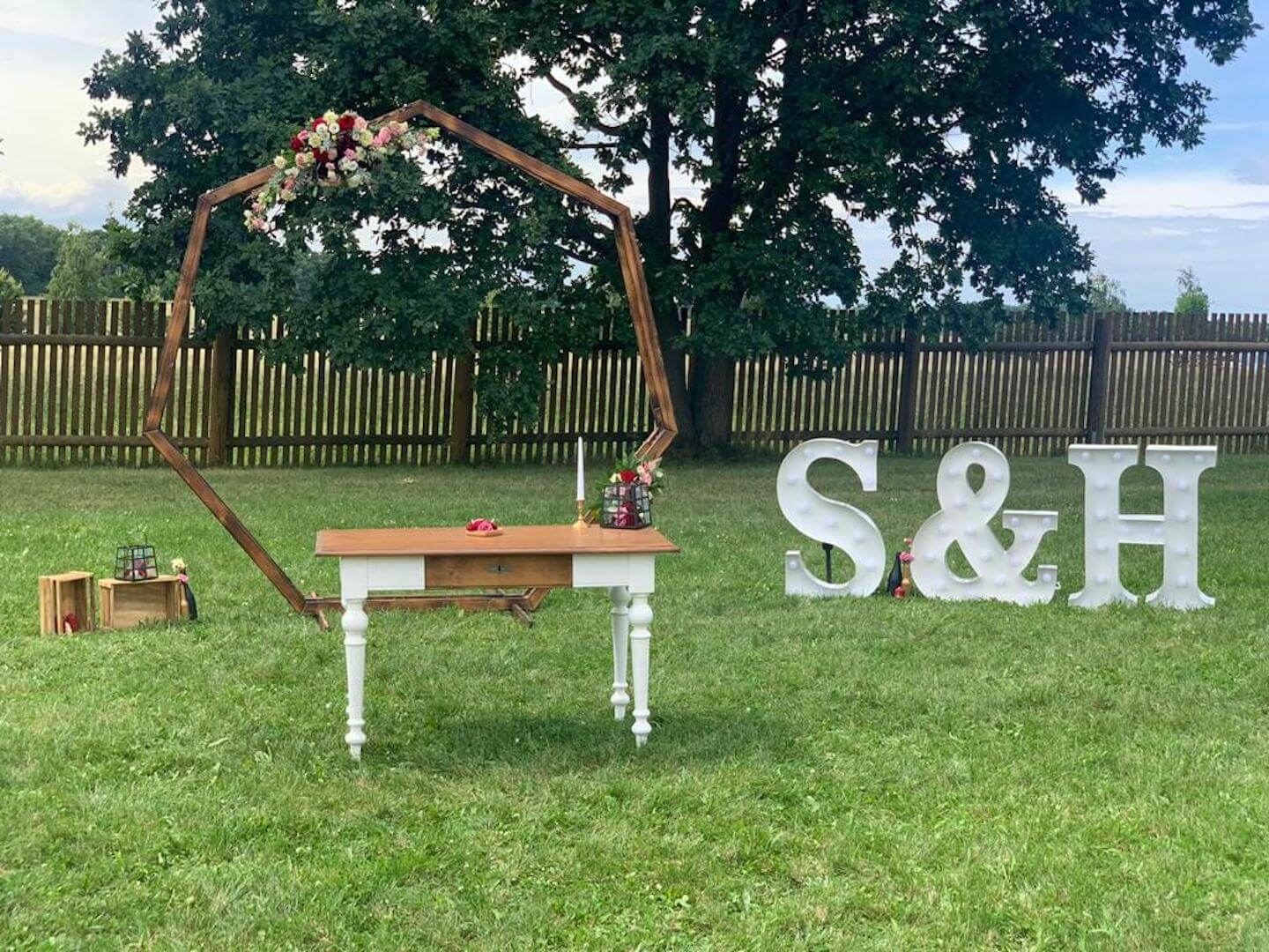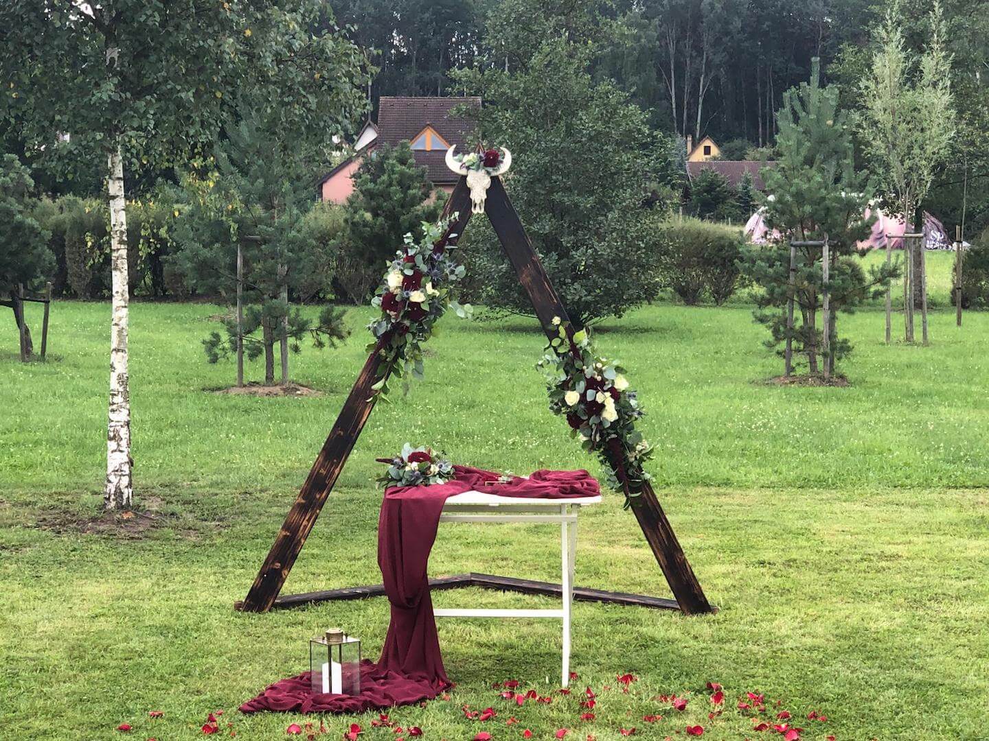 2x dřevěný stojan (na uvítání/zasedací pořádek)