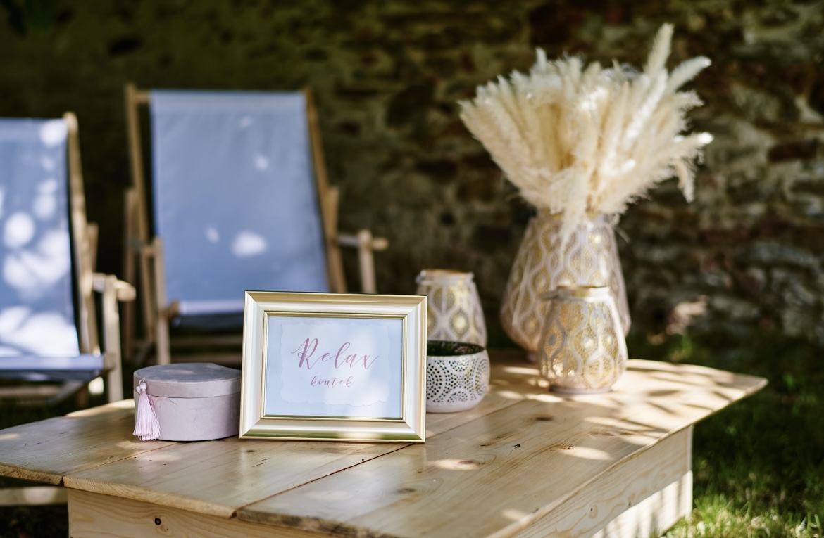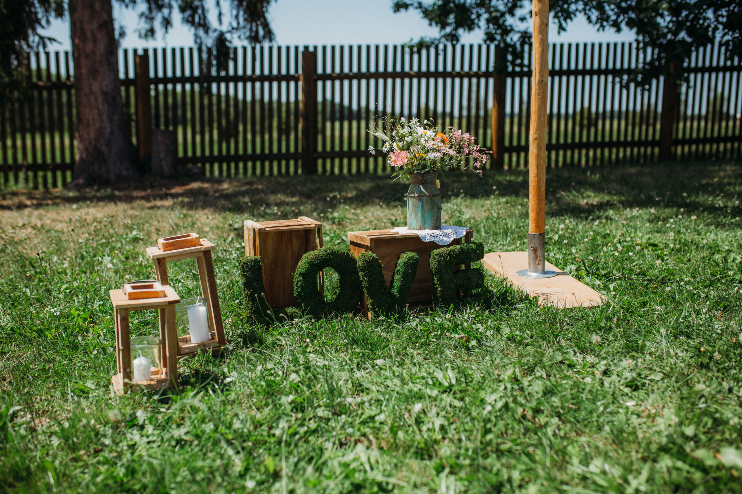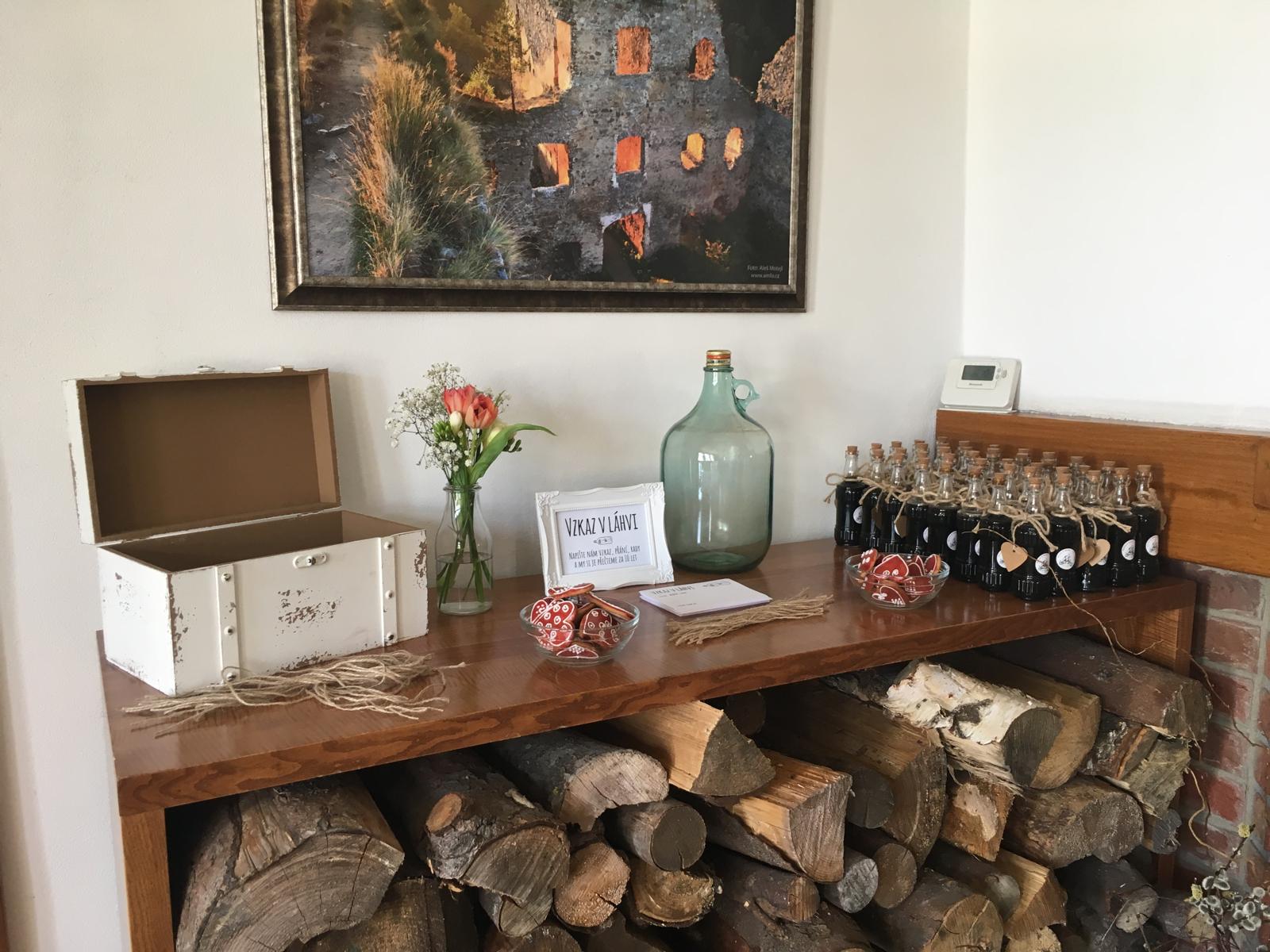 2x dřevěný popisek (místo na dary, fotokoutek)