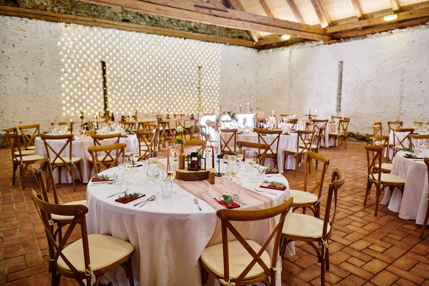 Odpolední boho svatba ve stodole v růžovo-vínové kombinaci se zlatými detaily