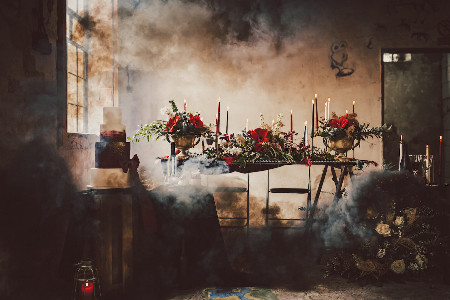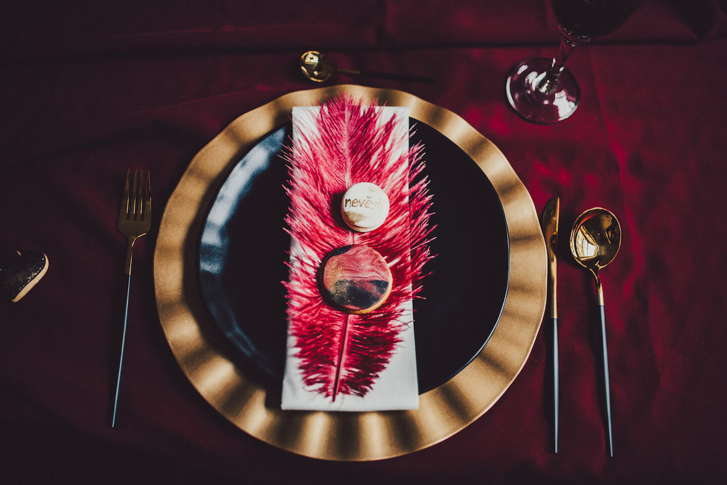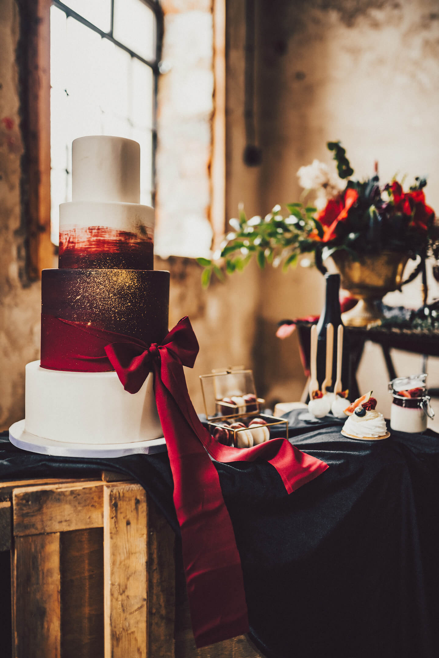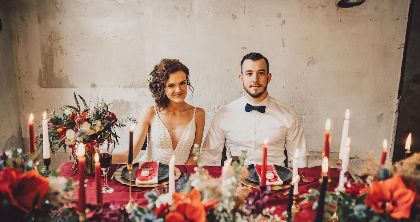 Netradiční svatba v industriálním stylu v kombinaci černé, vínové a zlaté