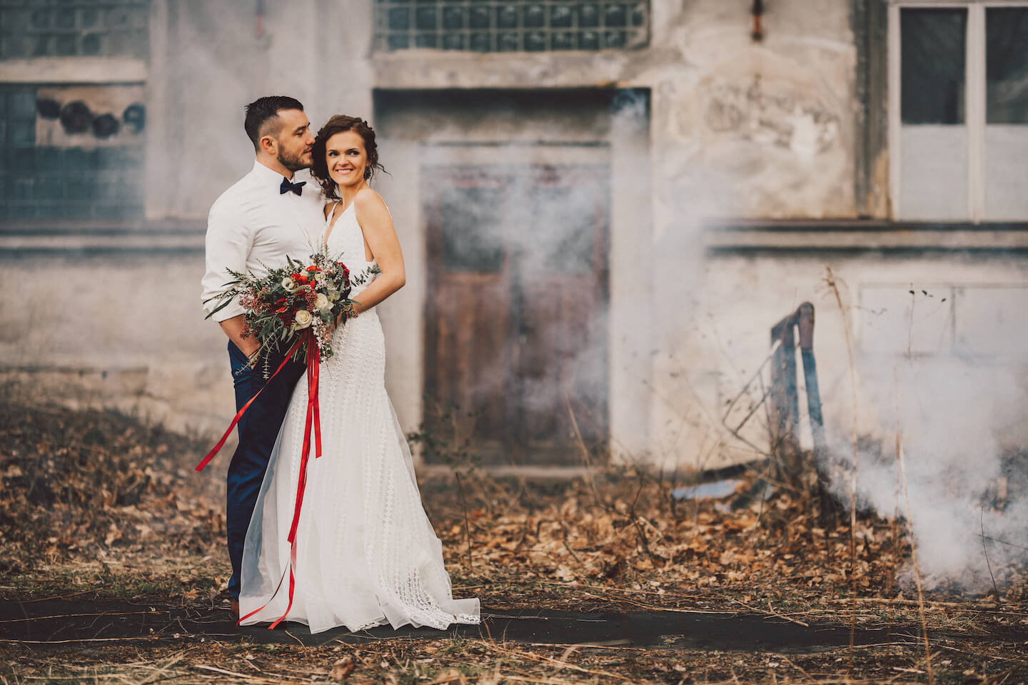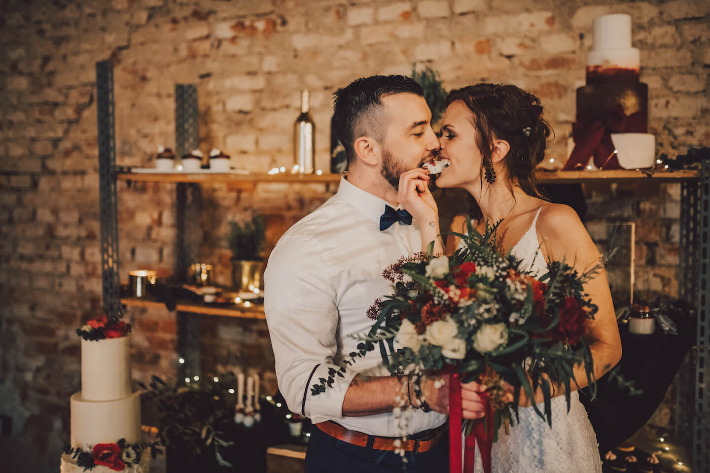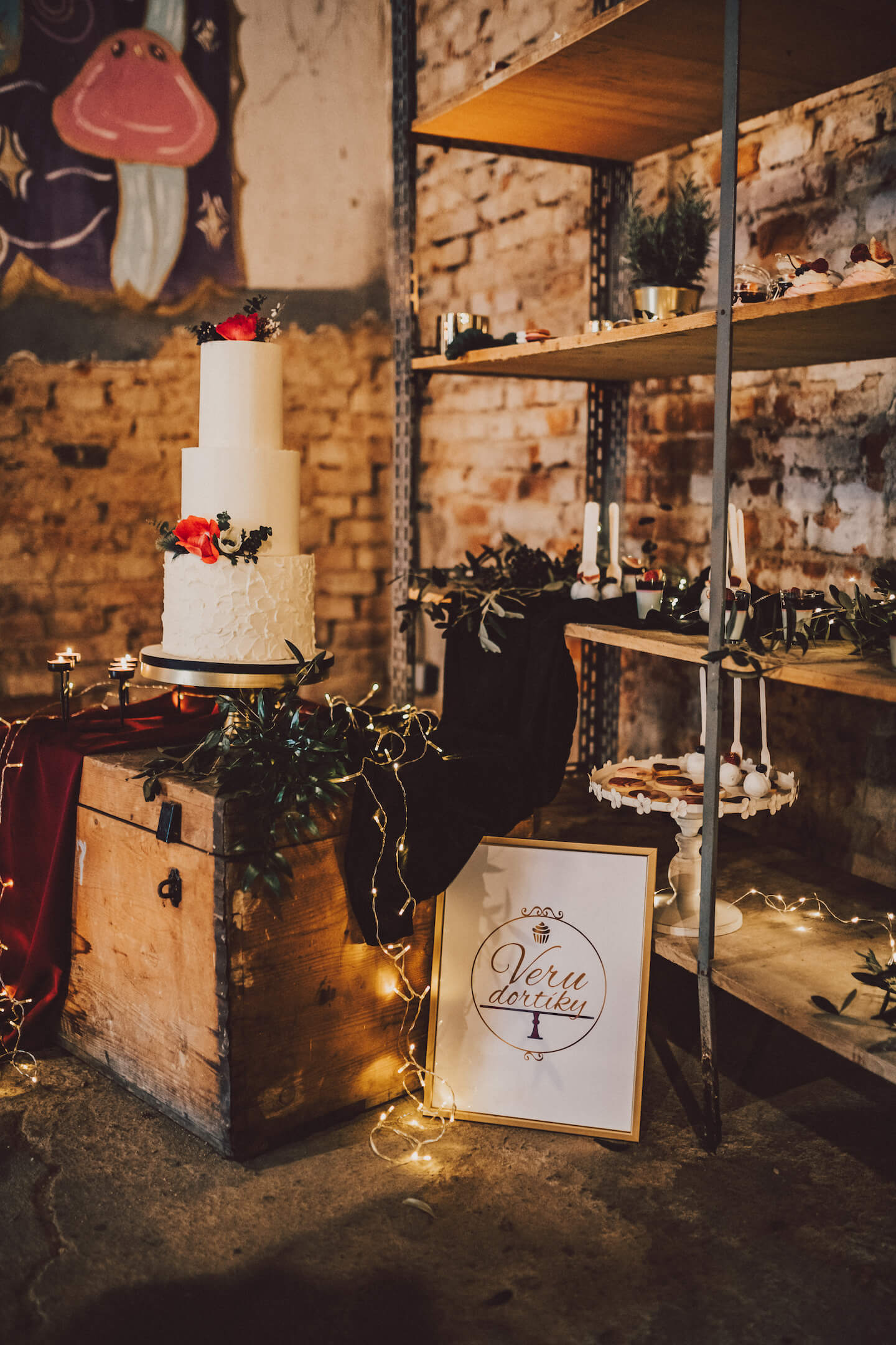 Celý příběh začal loni (v r. 2019), když jsme se s Verčou z Veru dortíky rozhodli, že společně vytvoříme inspirativní projekt pro naše nevěsty – editorial. Editorial je ve zkratce profesionální prezentace produktů nebo služeb utvářena formou fotopříběhu, nebo produktového videa. Pokud se jedná o větší projekt (jako v našem případě) může se na editorialu podílet více subjektů/firem, aby v něm mohli prezentovat svou práci. Na našem příběhu se podílelo celkem 12 dodavatelů z různých oborů a vypráví o tom, jak by mohla vypadat netradiční svatba stylizovaná do industriálního prostředí. Svou důležitou roli zde mají také modelka nevěsty a model ženicha, kteří celému příběhu dodali tvář a vdechli mu život. Stali se jimi právě Verča s přítelem Pájou. Verča a Pája se ale v den focení opravdu vzali a bylo to naprosto nádherné! Nebylo to vůbec nic plánovaného! Vše vyplynulo naprosto přirozeně uprostřed příprav na editorial v jeden veselý večer u sklenky vína, kdy jsme si dělali legraci, že už by do toho Veru s Pájou mohli konečně praštit! A tak přišel spontánní nápad, proč už se nevzít rovnou, když už budou krásně oblečeni a připraveni. Jsme rádi, že se nakonec svatba opravu uskutečnila a my všichni mohli být její součástí.